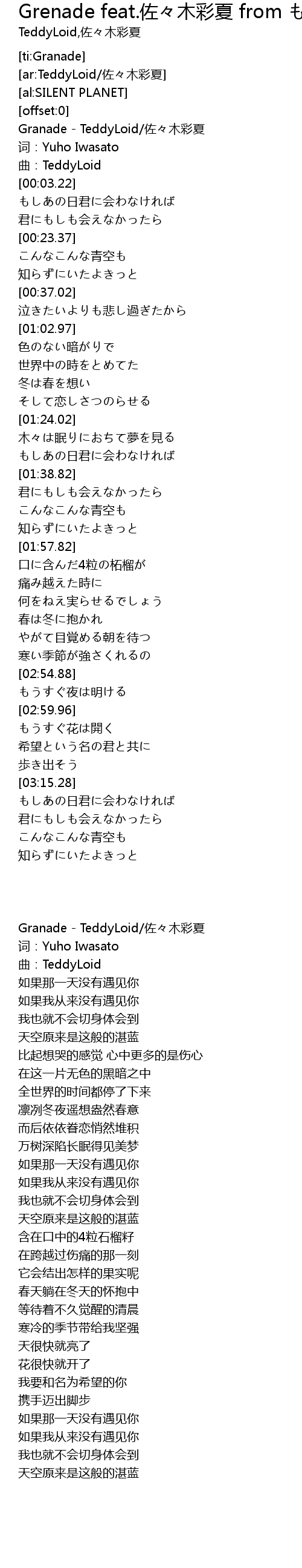 | [00:00.27] | Granade - TeddyLoid/佐々木彩夏 |