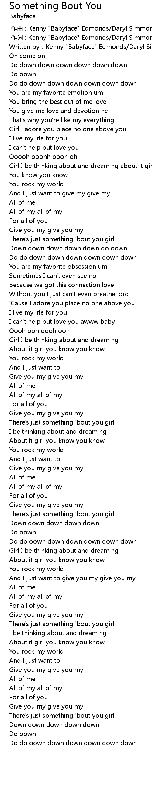 | [00:00.78] | Written by: Kenny " Babyface" Edmonds Daryl Simmons Kameron Glasper |