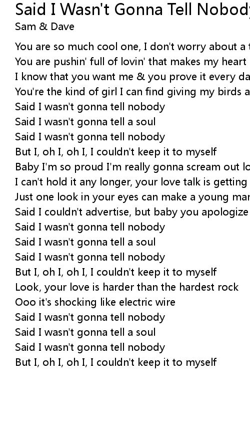 Said I wasn't gonna tell nobody |