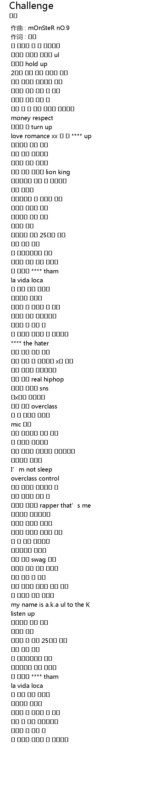 | [01:25.407] | 절대 못해 난 혈혈단신 x까 씨발 |