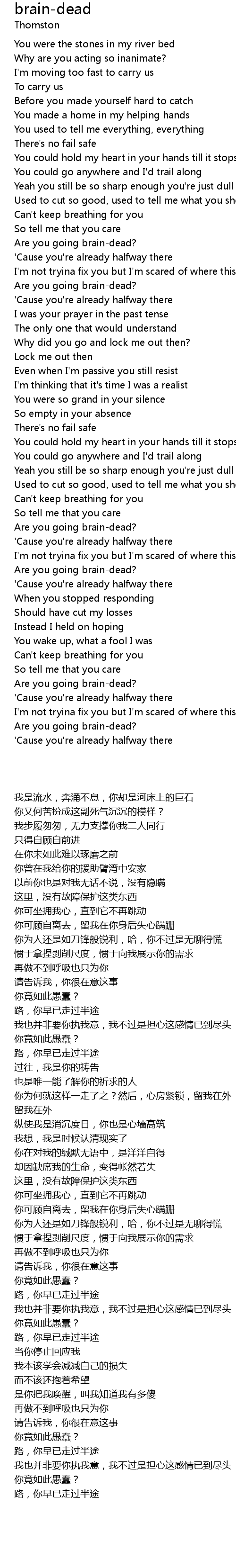 Can't keep breathing for you |