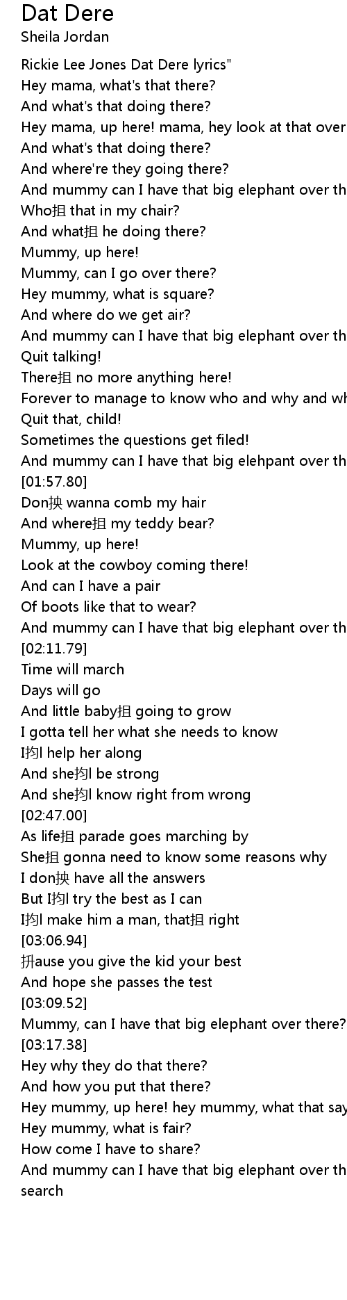 | [00:35.48] | Rickie Lee Jones Dat Dere lyrics" |