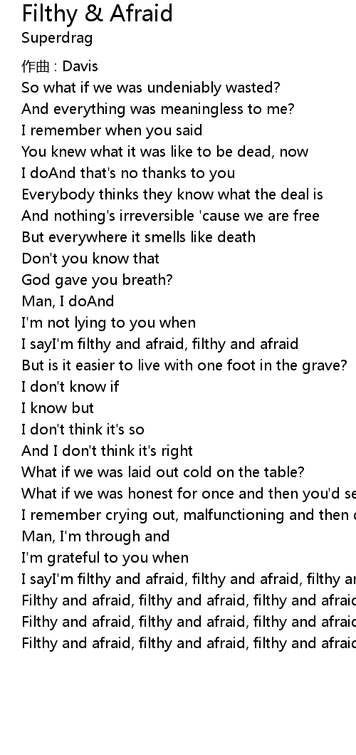 | I sayI'm filthy and afraid, filthy and afraid, filthy and afraid | |