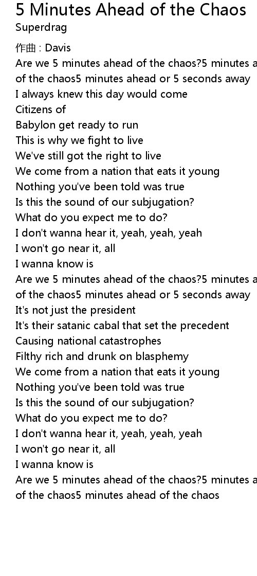 | Are we 5 minutes ahead of the chaos?5 minutes ahead of the chaos5 minutes ahead of the chaos5 minutes ahead or 5 seconds away | |