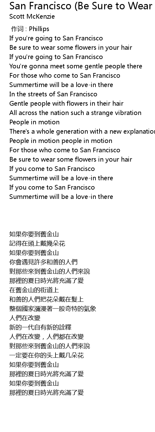 | Song | San Francisco (Be Sure to Wear Flowers in Your Hair) |