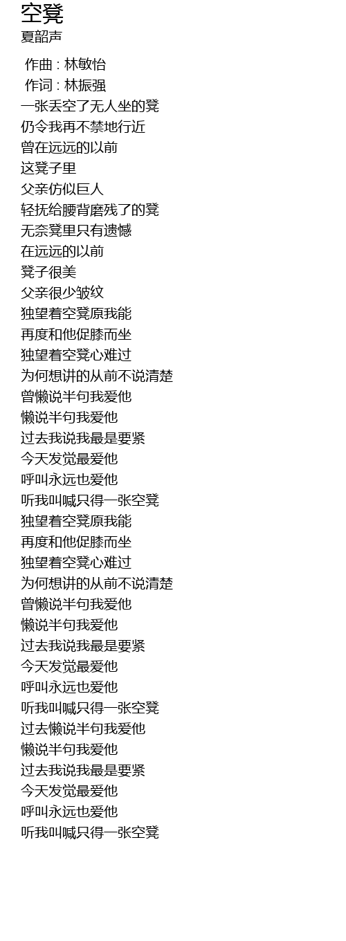| [04:10.48] | 听我叫喊只得一张空凳 |