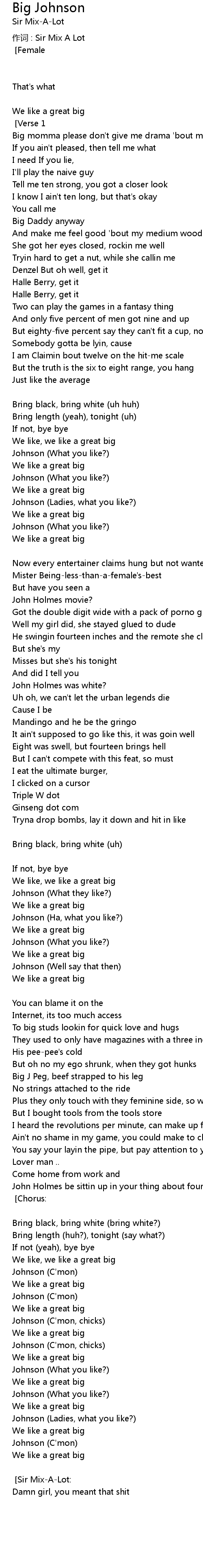 | Big fuckin cock [laughing] [Sir Mix-A-Lot:] | |