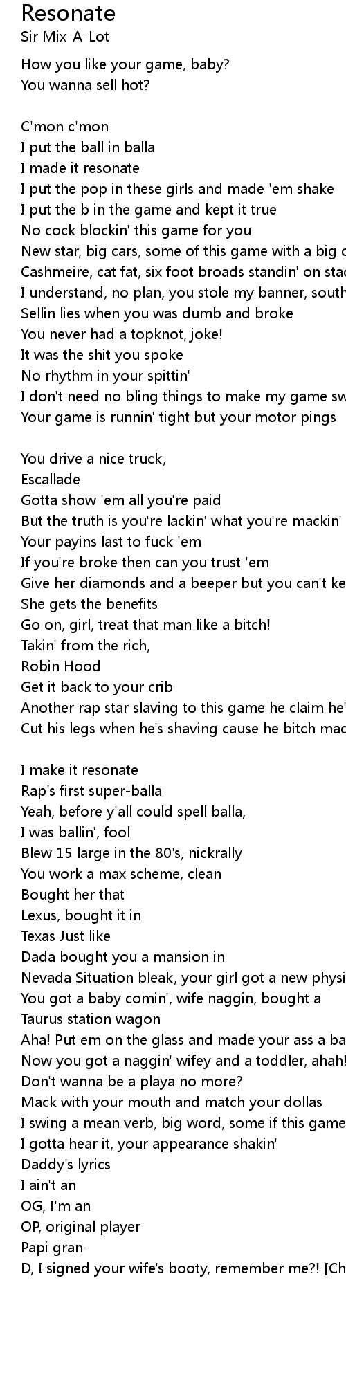 I make this game resonate baby, yeah resonate [Chorus:] |