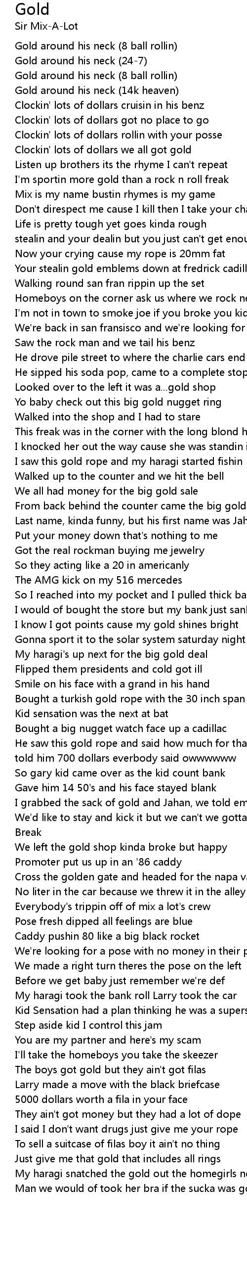 I'm sportin more gold than a rock n roll freak |