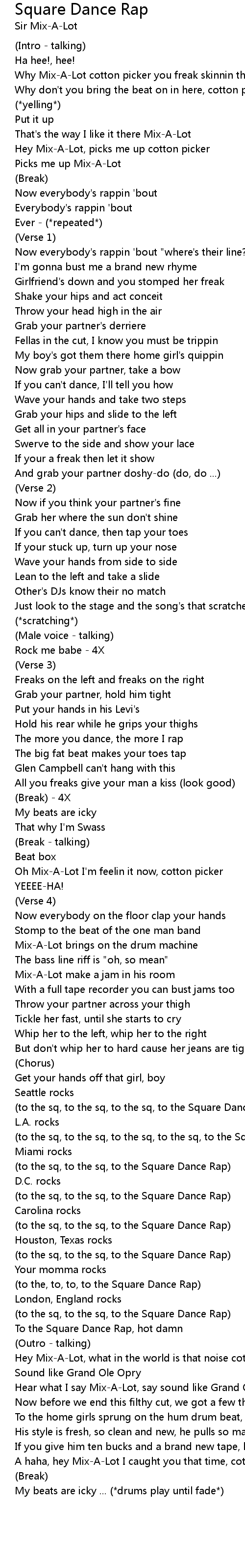 To the Square Dance Rap, hot damn |