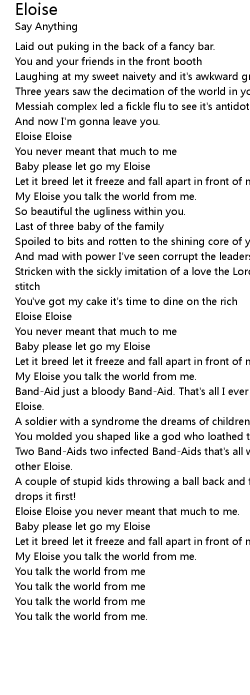 Band-Aid just a bloody Band-Aid. That's all I ever really was to you Eloise. |
