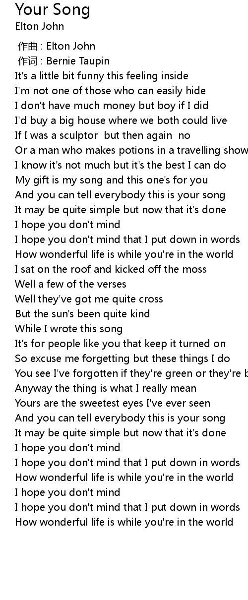 | [00:00.00] | 作曲 : Elton John |