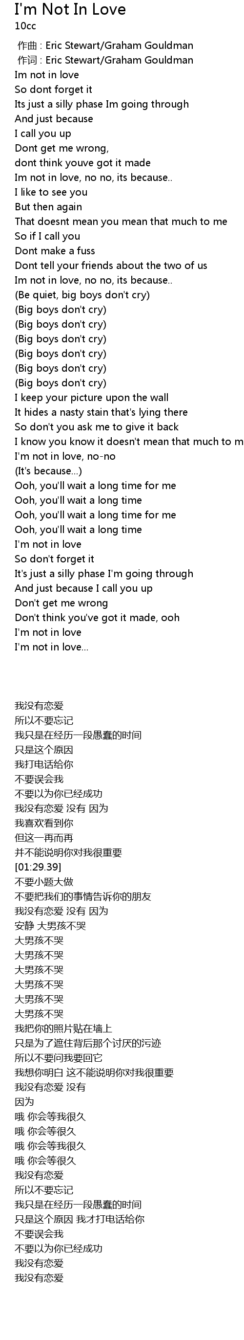 | [00:01.00] | zuò cí : Eric Stewart Graham Gouldman |