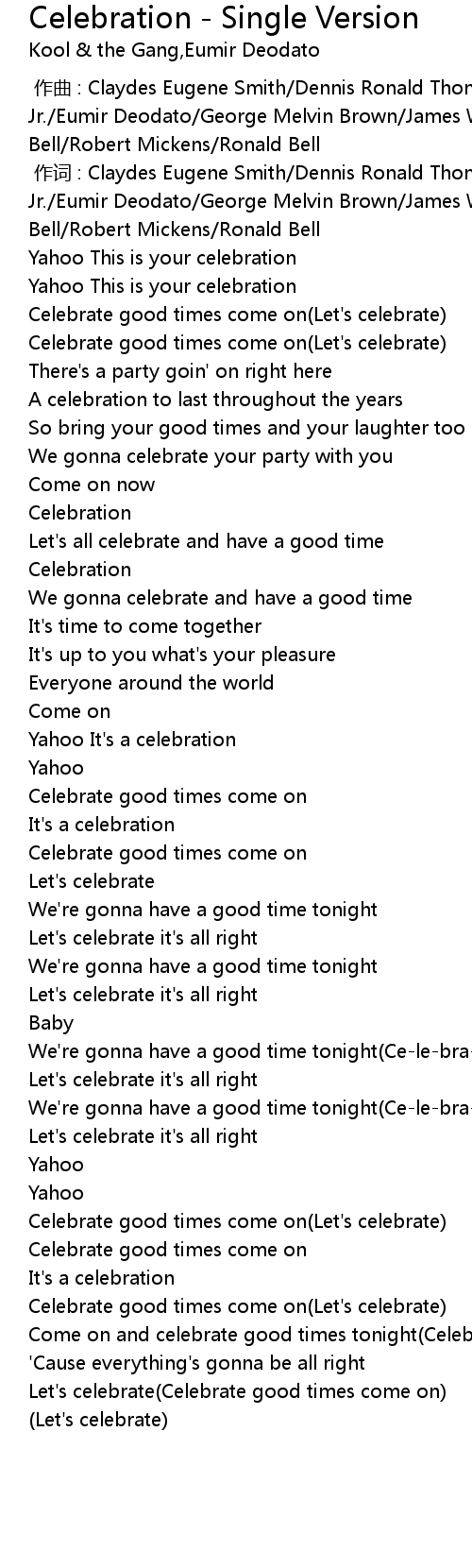 | [00:33.55] | Celebrate good times come on Let' s celebrate |