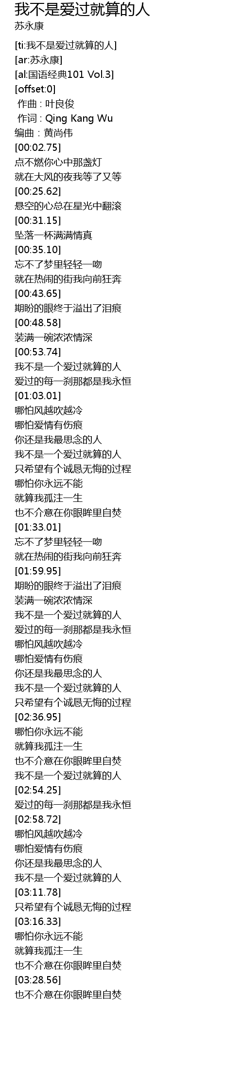 | [03:08.13] | 我不是一个爱过就算的人 |