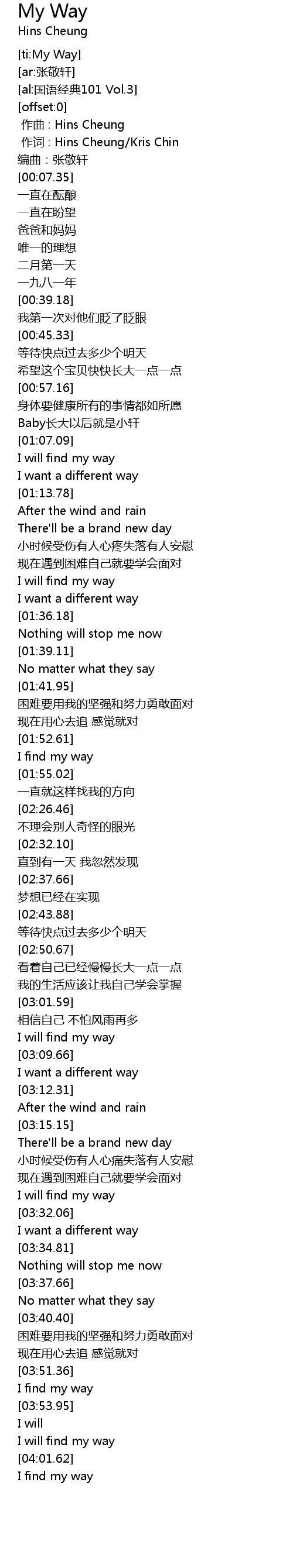 | [00:01.00] | zuò cí : Hins Cheung Kris Chin |