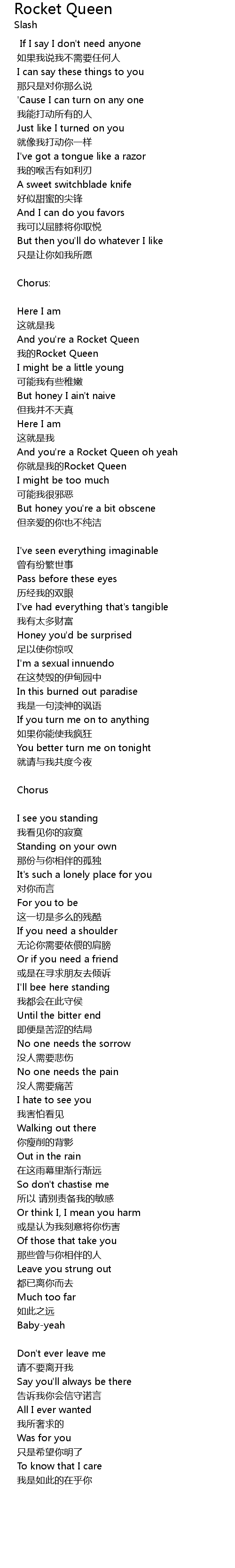 | And you' re a Rocket Queen oh yeah | |