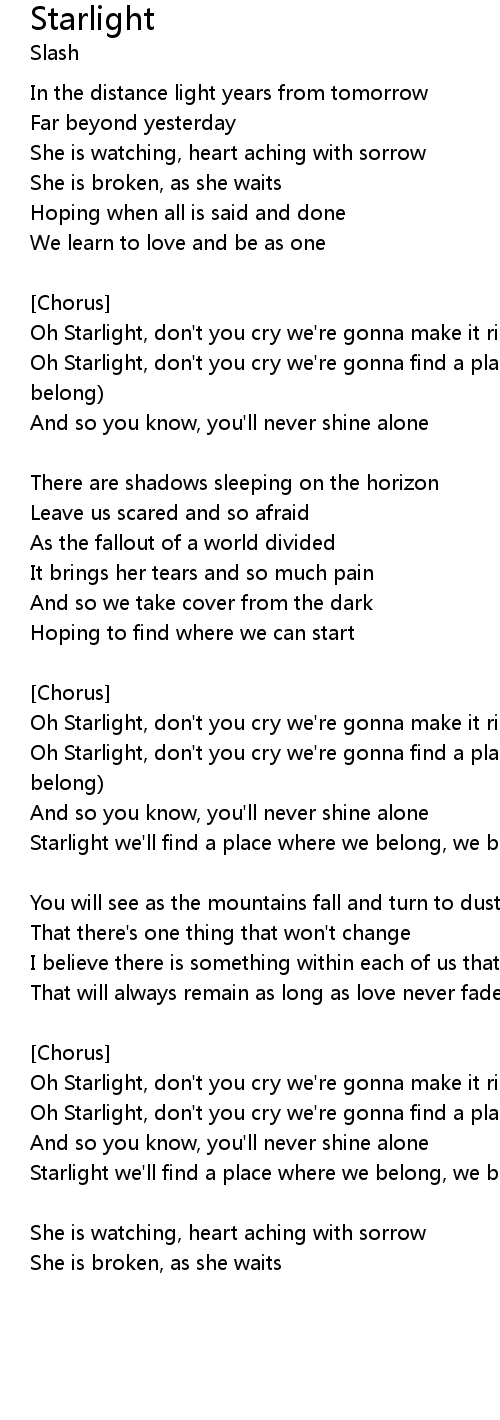 Oh Starlight, don't you cry we're gonna find a place where we belong (where we belong) |