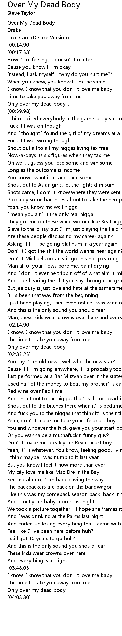 | [00:51.95] | Only over my dead body |