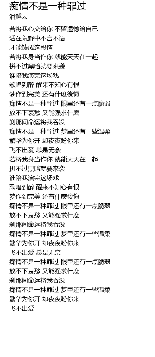 | Song | 痴情不是一种罪过 |