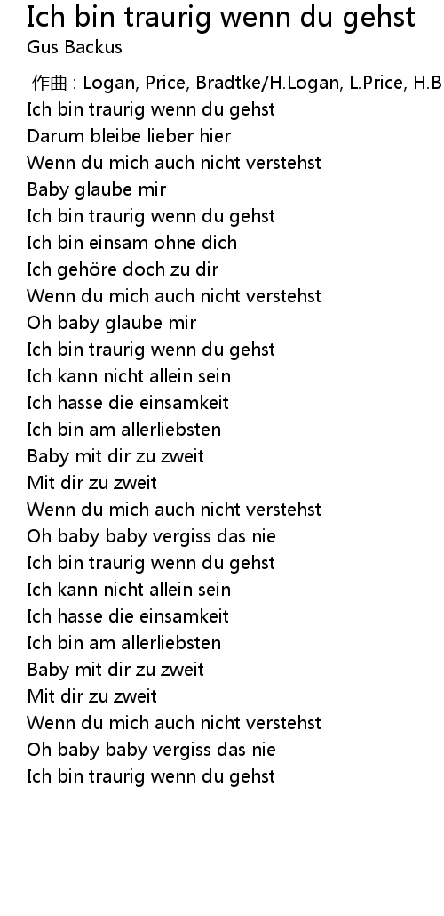 | [00:15.83] | Ich bin traurig wenn du gehst |
