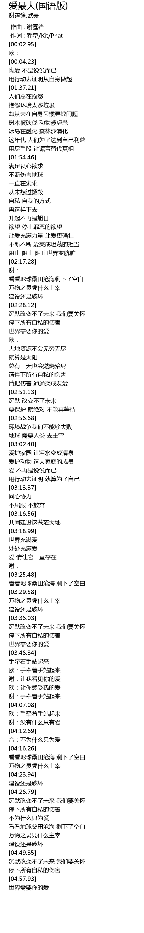 | [04:10.28] | xie: mei you shen me zhi you ai |