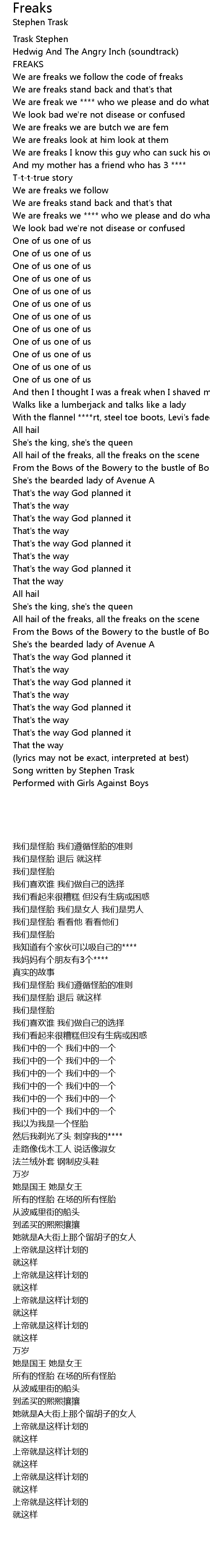 We are freaks we **** who we please and do what we choose |