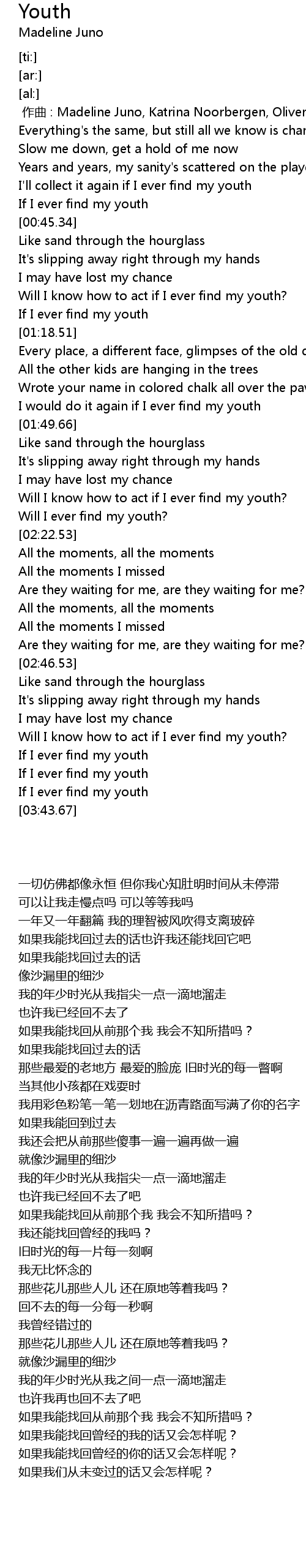 | [03:19.00] | Will I know how to act if I ever find my youth? |