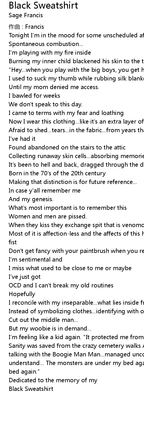 | Now I wear this clothing...like it's an extra layer of old skin | |