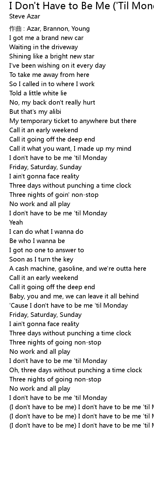 | I don' t have to be me I don' t have to be me ' til Monday | |
