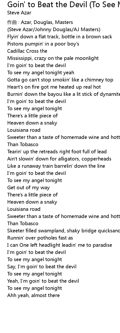| Yeah, I' m goin' to beat the devil | |