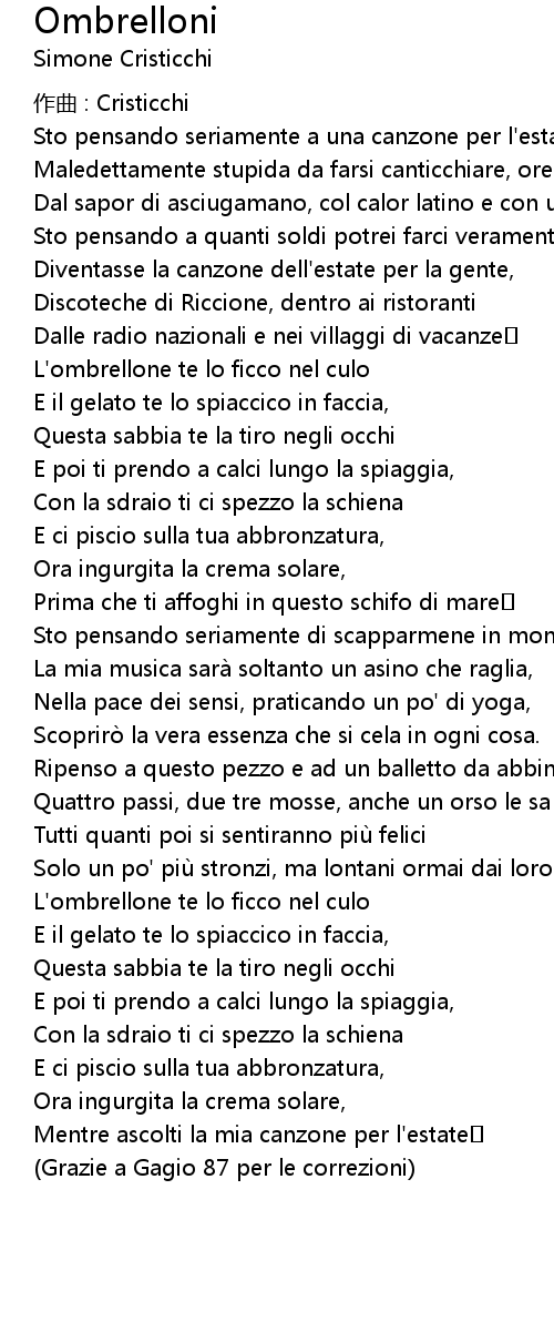 | Song | Ombrelloni |