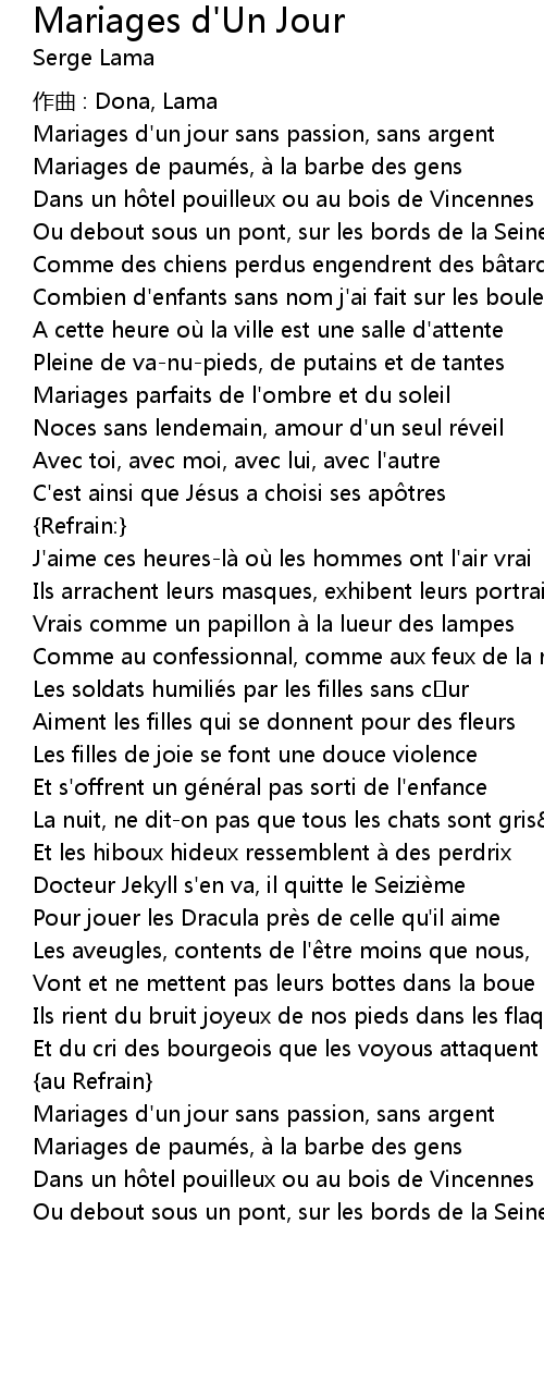 | Song | Mariages d'Un Jour |