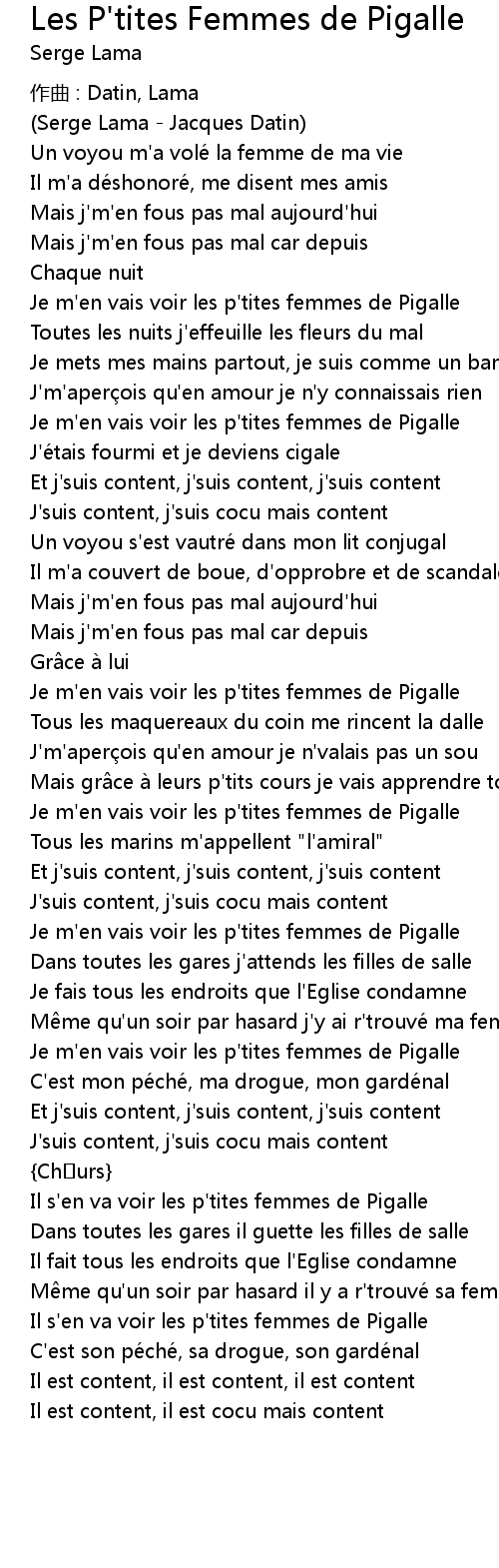| Song | Les P'tites Femmes de Pigalle |