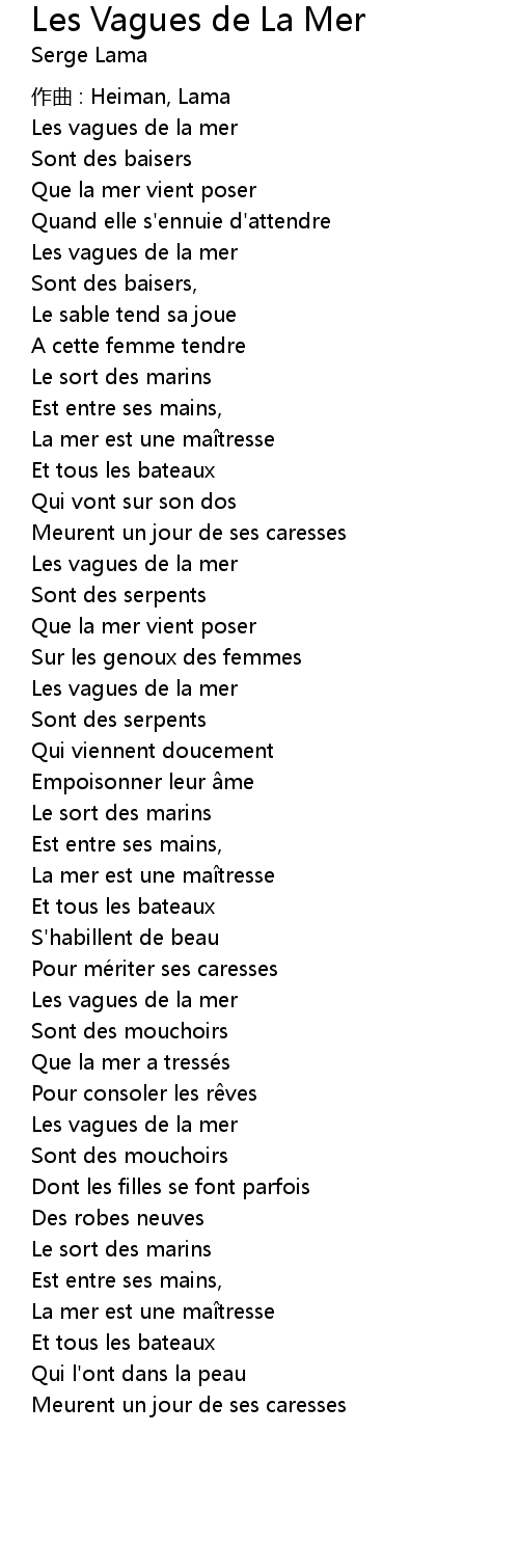 | Song | Les Vagues de La Mer |