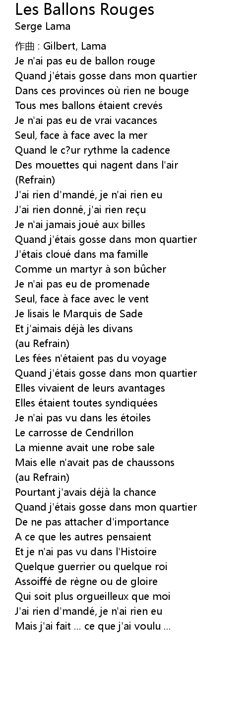 | J' ai rien d' mandé, je n' ai rien eu | |