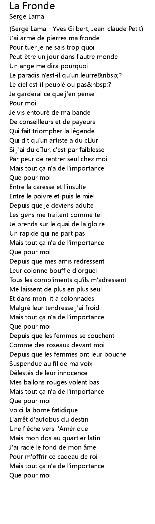 | (Serge Lama - Yves Gilbert, Jean-claude Petit) | |