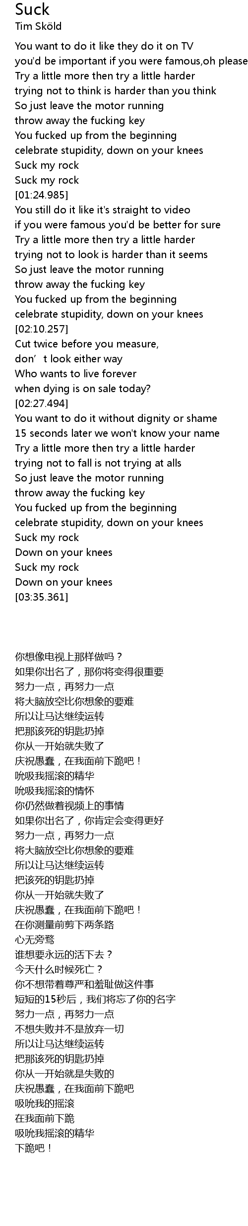 | [01:18.110] | Suck my rock |