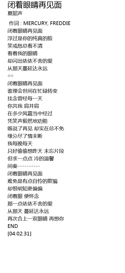 | [03:43.07] | 再次合上一双眼睛 再想你 |