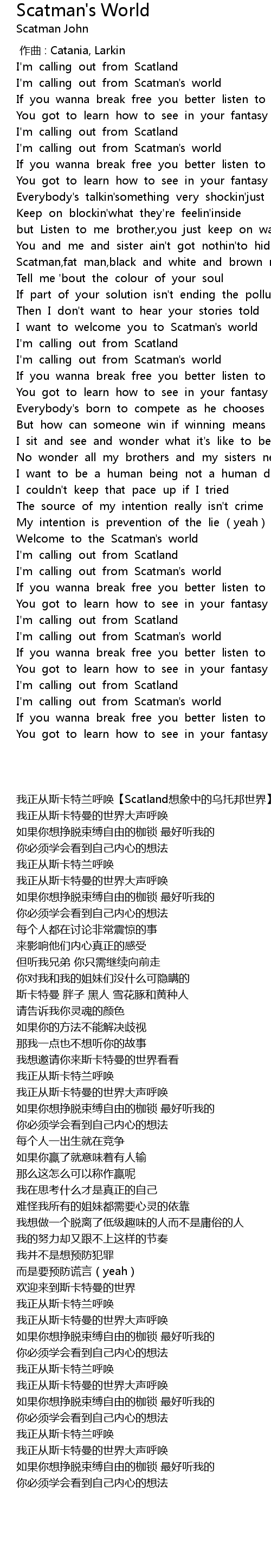 | [00:34.464] | I' m calling out from Scatman' s world |