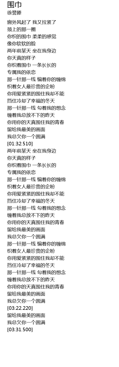 | [00:31.660] | 你织的围巾 柔柔的感觉 |