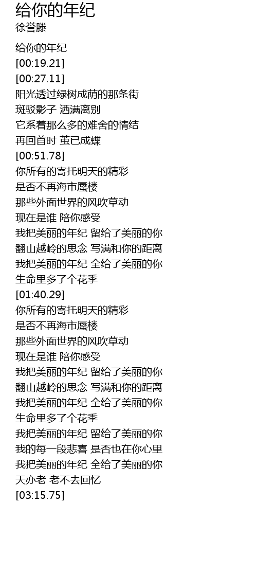 | [03:04.39] | 我把美丽的年纪 全给了美丽的你 |