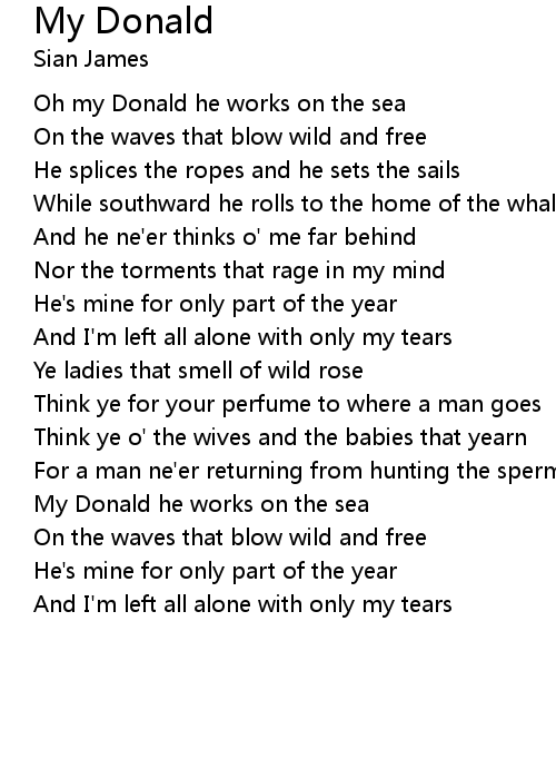 Oh my Donald he works on the sea |