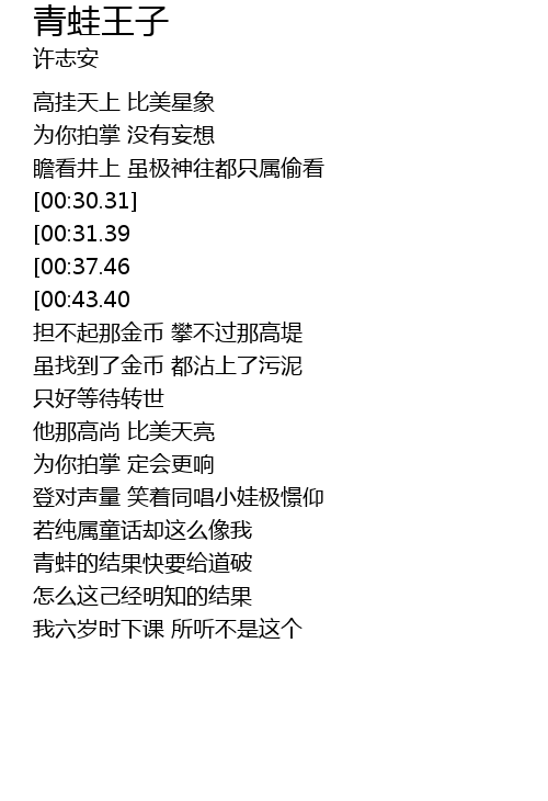 | [01:26.95][00:31.39] | 当青蛙找到纵天梯 |