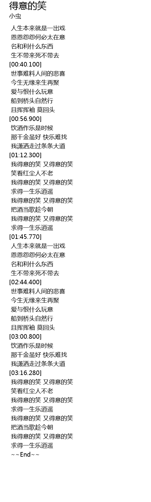 | [03:41.440] | 我得意的笑 又得意的笑 |