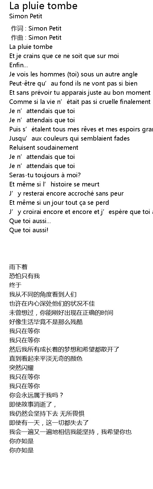 | [00:01.000] | zuò qǔ : Simon Petit |