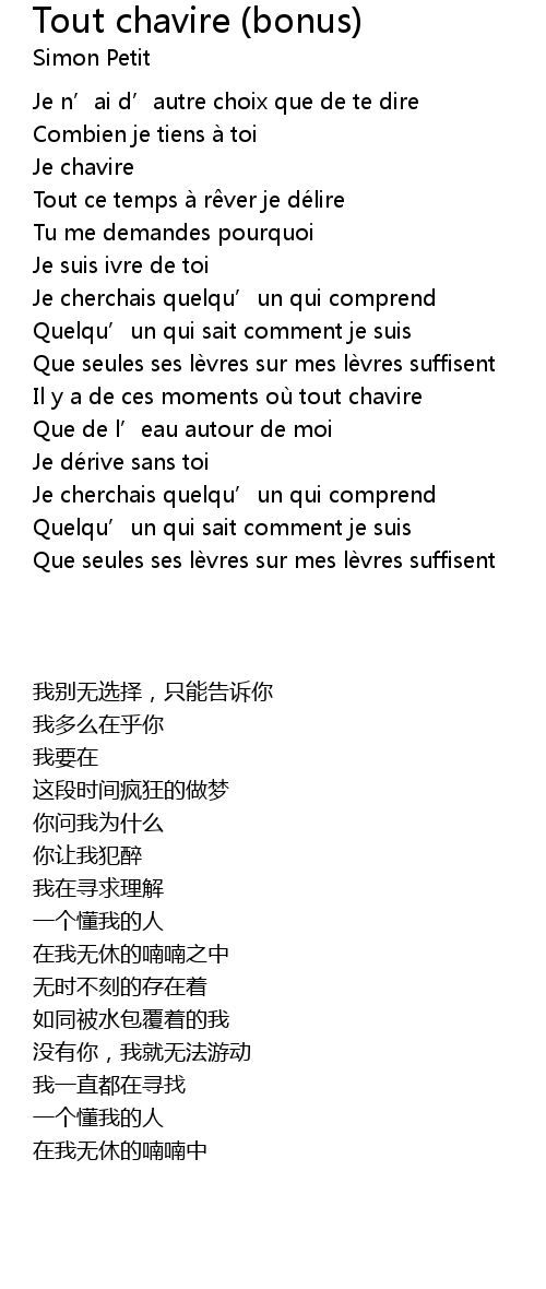 | [01:22.490] | Que seules ses le vres sur mes le vres suffisent |