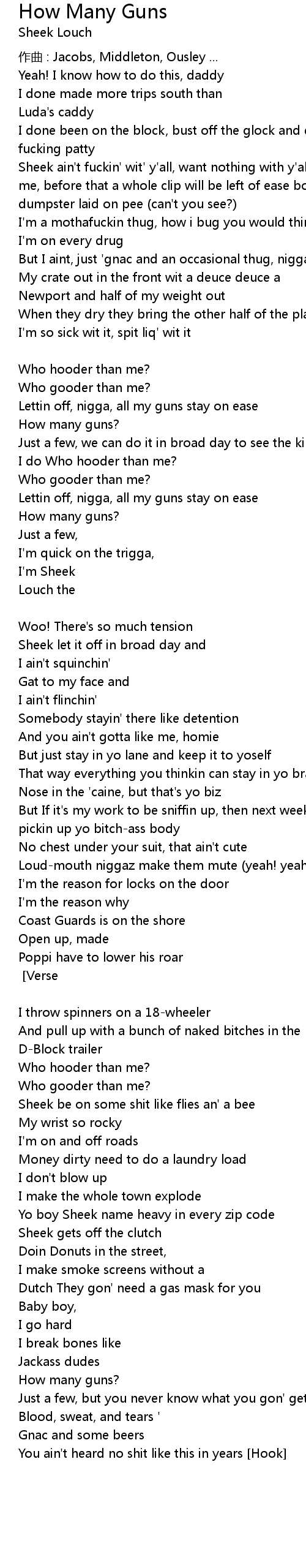| Sheek ain't fuckin' wit' y'all, want nothing with y'all you ain't gon' rat on me, before that a whole clip will be left of ease body left somewhere in a dumpster laid on pee (can't you see?) | |