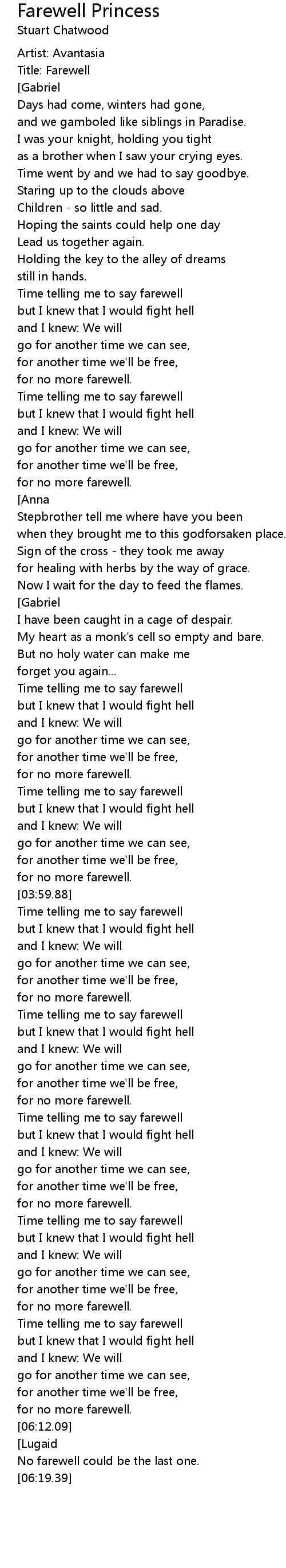 Farewell Princess Lyrics