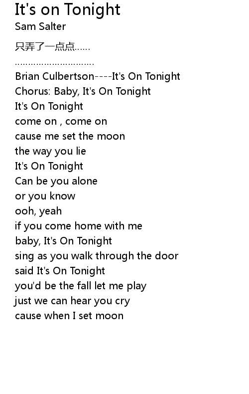| [00:04.93] | Chorus: Baby, It's On Tonight |